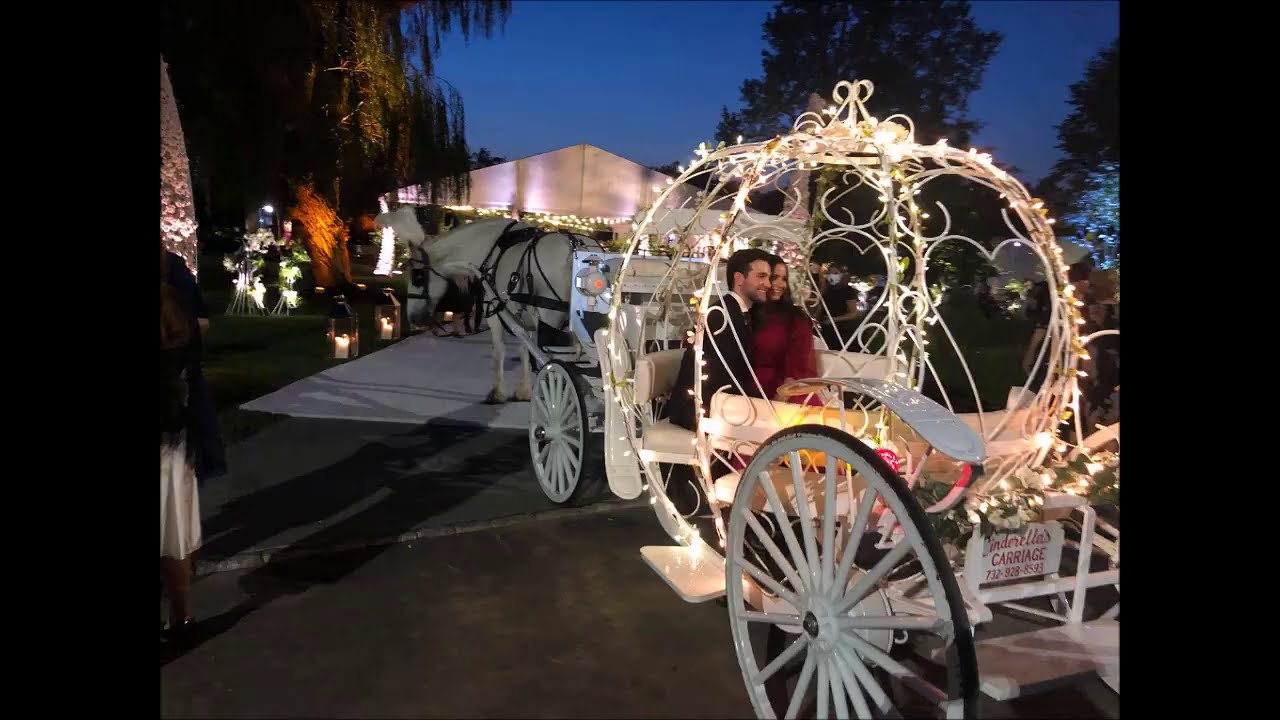 Lit Up Cinderella Carriage With 1 White Horse At Legacy Castle Wedding A Cinderella Carriage White Horse Horse Carriage