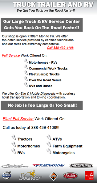 Commercial Semi Truck Trailer Rv And Camper Service Repair Clinton Missouri Jim Falk Motors